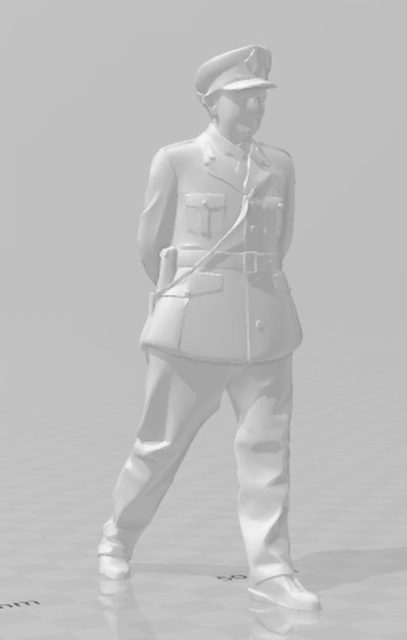 3D geprint figuur van een agent, kleding rond de jaren 60. Het figuurtje wordt in een neutrale kleur geleverd dus je moet het zelf nog verven. Levering in de clubruimte.